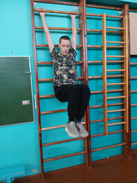 4. Вис на гимнастической стенке хватом сверху. Подъем выпрямленных ног в положение